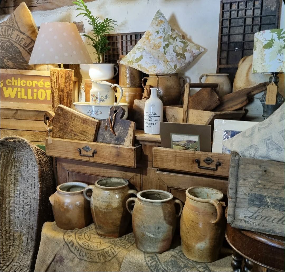 You’re warmly invited to visit my home studio/brocante on my family farm (La Perrière, 36370), by appointment, where you can browse both handmade pieces and curated brocante treasures.
